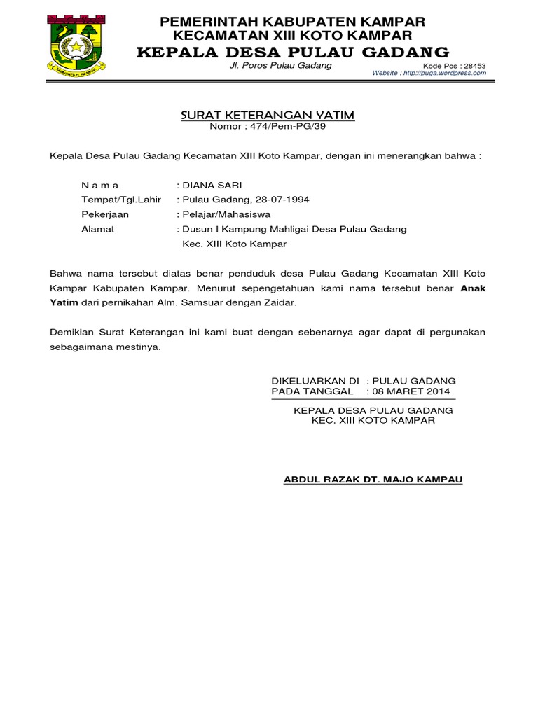 | Judul: Contoh Surat Keterangan Anak Yatim Contoh Surat |