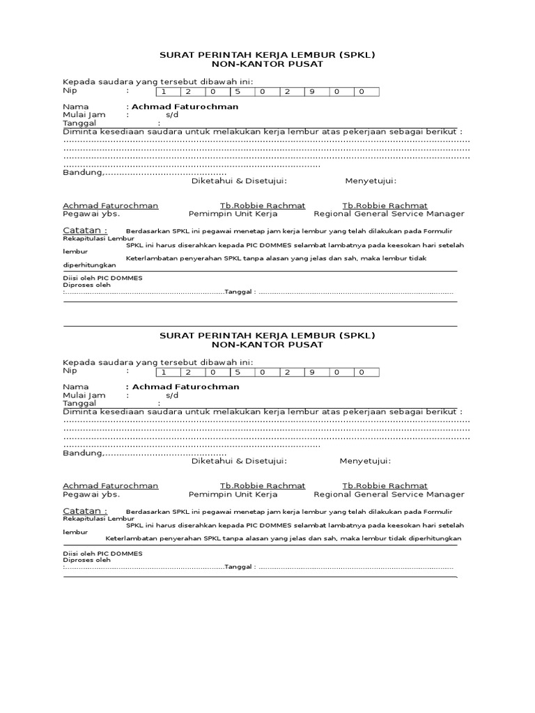 | Lihat Contoh Surat Tugas Lembur Karyawan Free Download Images |